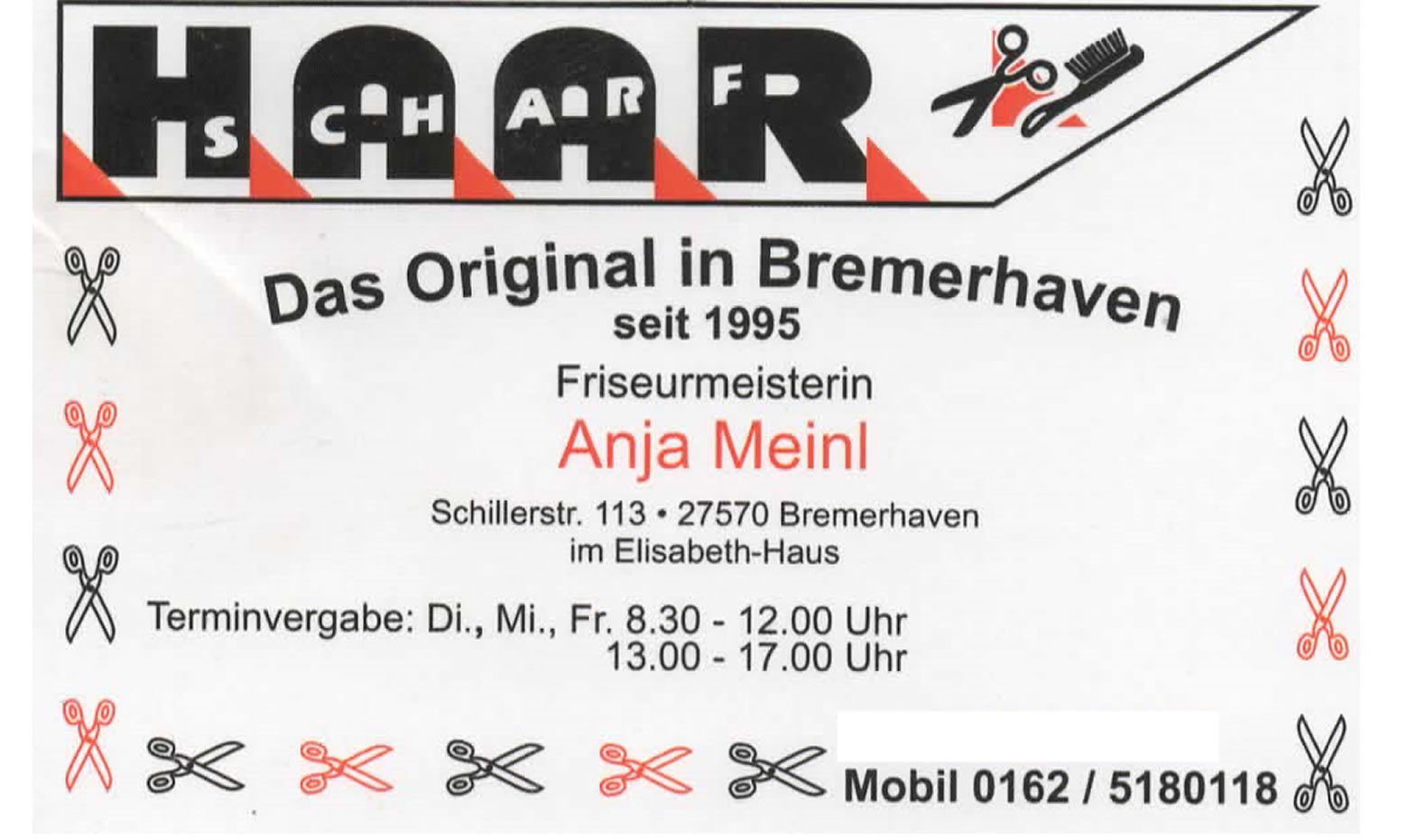 | Schillerstrasse 113 - 27570 Bremerhaven - 0162 - 5180 118 |